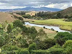 The Ōpārau River is a river of the Waikato Region of New Zealand's North Island in the area occupied by Ngāti Hikairo.[1] It flows southwest from its sources in the Pirongia Forest Park, the highest being The Cone, and flows into the Kawhia Harbour, 5 kilometres (3 mi) east of Kawhia.[2] The river has about 171 km (106 mi) of tributaries.[3]