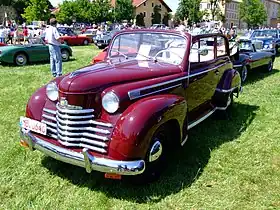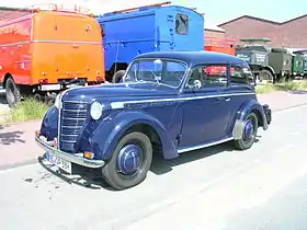 At 2500 Reichsmark it offered a true four-seater with 1.3-litre, four-cylinder, side-valve, 24 PS (18 kW) engine capable of 100 km/h (62 mph). Drive was to the rear wheels through a three-speed gearbox but a four-speed unit became available in 1937. The car had independent front suspension with a live axle at the rear and semi-elliptic leaf springs. This car was also assembled in Tanjung Priok, near Jakarta, in the then-Netherlands East Indies. Assembly there began in 1938 and the car was marketed as the "Opel 1.3".[5]