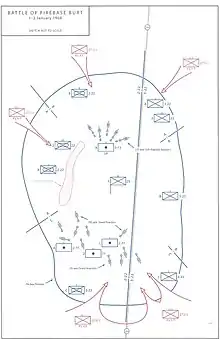 On the evening of 31 December while a 24-hour New Year's truce was in effect, the 271st and the 272nd Regiments of the PAVN 9th Division moved into attack positions around Firebase Burt. At midnight on 1 January 1968 under cover of a mortar barrage the PAVN began a simultaneous attack on the northern and southern ends of the base. The defenders detonated the perimeter Claymore mines and responded with small arms and Canister shot. PAVN rocket-propelled grenades knocked out an M113 and an M42 and at 02:30, a squad of sappers breached the south perimeter razor wire. The 2/77th artillerymen lowered their 105-mm. howitzers and fired directly into the PAVN with beehive rounds forcing them to withdraw. The PAVN disengaged shortly before dawn on 1 January. 379 PAVN were killed and 8 wounded were captured, while U.S. losses were 23 dead.[1]: 29–30