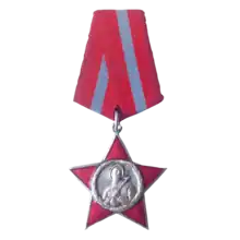 The Order of the Red Star (Albanian: Urdhri "Ylli i Kuq") was an award of the People's Socialist Republic of Albania.[1] It was awarded to officers, non-commissioned officers, pupils and students of military schools, soldiers, and reservists of the Albanian People's Army, as well as police officers, the Voluntary Forces of Popular Self-Defense, and armed school youth. It was awarded for good leadership in time of war and for very good achievements in the war against enemies of the people in peacetime.