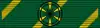 The ribbon of the order is 37 mm (1.5 in) in diameter wide in green with 2 mm (0.079 in) wide diagonal yellow rays spaced 11 mm (0.43 in) apart.[3]
