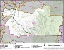 District 18 of the Oregon House of Representatives is one of 60 House legislative districts in the state of Oregon. As of 2021, the boundary for the district includes portions of Clackamas and Marion counties. The district includes Aurora, Hubbard, Molalla, Silverton, and Mount Angel. The current representative for the district is Republican Rick Lewis of Silverton.[1][2]
