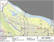 District 44 of the Oregon House of Representatives is one of 60 House legislative districts in the state of Oregon. As of 2021, the district is contained entirely within Multnomah County and covers parts of north and northeast Portland, including the Portland International Airport. The current representative for the district is Democrat Travis Nelson of Portland.[1][2]