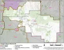 District 59 of the Oregon House of Representatives is one of 60 House legislative districts in the state of Oregon. As of 2021, the boundary for the district contains all of Crook and portions of Deschutes and Jefferson counties. The district is anchored by the population centers of Madras and Prineville as well as parts of Bend and Redmond. The current representative for the district is Republican Vikki Breese-Iverson of Prineville.[1][2]