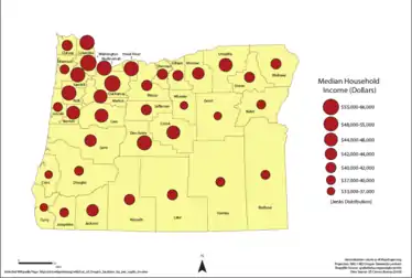 The following is a list of Oregon counties and places in order of per capita income. Oregon has the twenty-third highest per capita income in the United States of America, at $20,940 (2000). Its personal per capita income is $29,340 (2003).