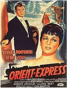 Orient Express is a 1954 drama film directed by Carlo Ludovico Bragaglia and starring Silvana Pampanini, Henri Vidal, Folco Lulli, Eva Bartok, and Curd Jürgens.[1] It was made as a co-production between Italy, France and West Germany.