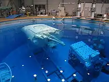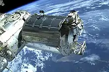 The Japanese Experiment Module (JEM), christened Kibō ("hope") in 1999, is Japan's first crewed spacecraft. Kibō consists of a pressurised laboratory dedicated to advanced technology experiments, education and art, a cargo bay, an unpressurised pallet for vacuum experiments in space, a robotic arm, and an interorbital communication system. While the proposed space station was redesigned many times around Kibō, the only significant change has been the placement of its ballistic shielding. Its final position at the front of the station increases the risk of damage from debris. The ESA and NASA, by contrast, both reduced the size of their laboratories over the course of the programme. The Japanese National Space Development Agency (NASDA) formally submitted the JEM proposal to NASA in March 1986, and by 1990 design work began.[2][9][10] Constructed in the Tobishima Plant of Nagoya Aerospace Systems Works, by Mitsubishi Heavy Industries, Ltd., Kibō made its way to the Tsukuba Space Center and in 2003 Kibō was shipped, first by river barge and then by ship, to America. In 2010, Kibō won the Good Design Award, a 67-year-old consumer and industry award which identifies the best of Japanese craftsmanship.[11][9]