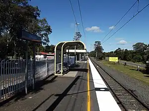 Ormiston station opened in 1889 at the same time as the line.[3][4] On 1 November 1960, the station closed when the line was truncated to Lota.[5] The station reopened on 24 October 1987 at the same time as the rebuilt line from Wellington Point to Cleveland.[6]