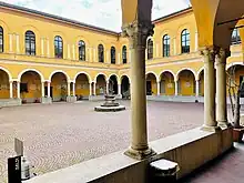 The Orto Botanico dell'Università di Pavia also known as the Orto Botanico di Pavia (Botanical Garden of Pavia in English), is a botanical garden maintained by the University of Pavia. It is located at Via S. Epifanio, 14, Pavia, Italy, and is open to the public on weekends. The botanical garden covers an area of about two hectares and has approximately two thousand different species of plants, which are organised in sections. The current director is Francesco Sartori.The Botanical Garden stands in the place where the church of Saint Epiphanius was located, of which it preserves the cloister of the 15th century.[1]