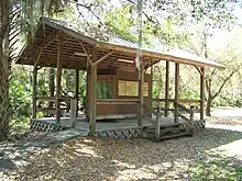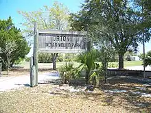 One of the area's attractions is the Ortona Indian Mound Park, which preserves part of the Ortona Prehistoric Village, and the hiking trail through that area.[2] The prehistoric mounds, canoe canals and earthworks were constructed by Native Americans across a five-square-mile region along the north side of the Caloosahatchee River.[3] The site is located on SR 78, north of LaBelle.[4][5]