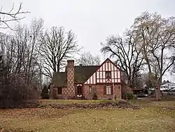The Orville Jackson House in Eagle, Idaho, is a brick and stucco, 1+1⁄2-story Tudor Revival structure designed by Tourtellotte and Hummel and constructed in 1932. The house features a decorative diamond pattern of clinker brick visible on the chimney. Projecting clinkers are evident also in the brickwork of the first floor outer walls. The house was added to the National Register of Historic Places in 1982.[2]