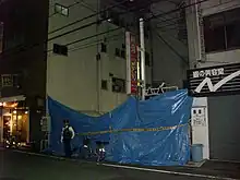 6. 1 2 "大阪の雑居ビル火災で15人死亡 殺人容疑などで客の男逮捕へ". 47news (in Japanese). 2008-10-01. Archived from the original on 2008-10-02. Retrieved 2023-07-01.