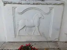Bolesław's alleged tomb is embedded in the northern side of the church wall, a Roman marble relief depicting a horse with the Latin inscription: REX BOLESLAVS OCCISOR SANCTI STANISLAI EPISCOPI CRACOVIENSIS ("Boleslav, King of Poland, Murderer of Saint Stanislav, Bishop of Cracow"). Above it, a painted epitaph shows several illustrations of the king's fate. A memorial stone was added by Polish servicemen in 1946.