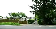 On the site of a former Prussian parade ground in the northwest of the town, housing for 2,500 people was created in the early 1970s in dense high-rise construction. Some of the residential buildings were subsidized with public funds, others were sold as condominiums. In the early days, the apartment buildings, which were up to 14 stories high, were regarded by the public as a prime example of modern subsidized housing, but just a few years later the residential location was perceived as unattractive by a large part of the population, so that the street gradually fell into disrepair. In 2002, the housing estate was included in the subsidy program Sozialraum mit erhöhtem Erneuerungsbedarf. In 2007, about 2800 people lived in the settlement, of whom about 70% had a migration background.[27]