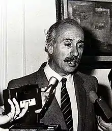Upon the return of democracy, Álvarez Guerrero helped relaunch the UCR in Río Negro and was a leading player in the national internal Radical movement of Raúl Alfonsín and Conrado Storani.[1] In 1973 he became President of the provincial committee of the UCR and was elected to the Argentine Chamber of Deputies.[1] Following the coup of 1976, he was arrested and 'disappeared' for 72 hours, being released following protests by his party, including former President Illia, although he lost his passport and the right to leave the country.[1]
