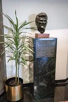 A bust of Otis Chandler in the lobby of the former Los Angeles Times Building, 2014.
