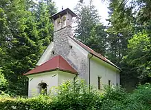 The church in Otok is dedicated to Saints Primus and Felician. It was first mentioned in written documents in 1526 and was remodeled in the 17th century. The church consists of an entry portico, a rectangular nave with a bell gable, and a small octagonal chancel walled on three sides. The church is surrounded by a low wall. The church stands on a rise east of the village in the southern part of the Cerknica Karst Field.[3]