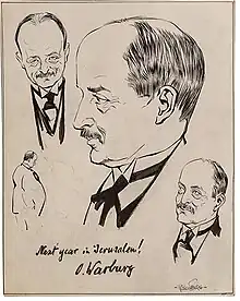 Warburg was also at risk due to his relationship with Jacob Heiss, with whom he lived and worked.[9] Beginning around 1918, Heiss served variously as Warburg's personal aid, secretary, and administrative assistant.[10] The couple lived together in an elegant villa in Dahlem, in Berlin.[9][11][12]