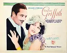 Outcast is a 1928 American synchronized sound drama film produced and distributed by First National Pictures. While the film has no audible dialog, it was released with a synchronized musical score with sound effects using the sound-on-disc Vitaphone process. It was directed by William A. Seiter and stars Corinne Griffith, often considered one of the most beautiful women in film. This story had been filmed in 1917 as The World and the Woman with Jeanne Eagels. In 1922 a Paramount film of the same name with Elsie Ferguson reprising her stage role was released. Both films were based on a 1914 play, Outcast, by Hubert Henry Davies which starred Ferguson. The Seiter/Griffith film was an all silent with Vitaphone music and sound effects. In the sound era the story was filmed once again as The Girl from 10th Avenue starring Bette Davis.[1][2][3] According to the Library of Congress database shows a print surviving complete at Cineteca Italiana in Milan.