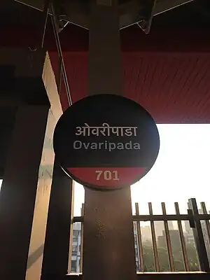 Ovari Pada is the elevated northern terminal metro station on the North-South corridor of the Red Line 7 of Mumbai Metro. This station is located in an elevated position on Western Express Highway in North Mumbai. This metro station was inaugurated on 2 April 2022 by Prime Minister Narendra Modi. [1][2][3]
