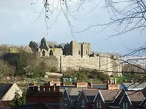 Oystermouth Castle (Welsh: Castell Ystum Llwynarth) is a Norman stone castle in Wales, overlooking Swansea Bay on the east side of the Gower Peninsula near the village of Mumbles.