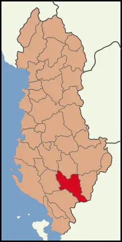 Përmet District (Albanian: Rrethi i Përmetit) was one of the 36 districts of Albania, which were dissolved in July 2000 and replaced by 12 newly created counties. It had a population of 25,837 in 2001, and an area of 929 km2 (359 sq mi).[1] Its area has an Aromanian minority.[2][3] It is in the south-east of the country, and its capital was the town of Përmet. Its territory is now part of Gjirokastër County: the municipalities of Përmet and Këlcyrë.