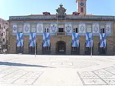 City Hall, in Almada Square, dressed with Póvoa de Varzim municipal flags.