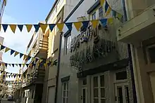 Póvoa de Varzim Holiday, Saint Peter Festivals (Festas de São Pedro) or Saint Peter Night (Noite de São Pedro) is celebrated annually on June 29, Saint Peter's Day in Póvoa de Varzim, Portugal. It is a late midsummer festival and the last of the three Portuguese popular saints — Santos Populares. It is celebrated with the lighting of bonfires, dances, competitions between quarters and diverse parties. Saint Peter festival includes the "rusgas", in which inhabitants of one quarter (bairro) visit in a parade other quarters in the evening of June 28.[1] Women are dressed as tricana poveira (women dressed in a traditional costume with a sensual walking style).[2] Each neighborhood has its own festival, neighborhood colors and altar to Saint Peter.