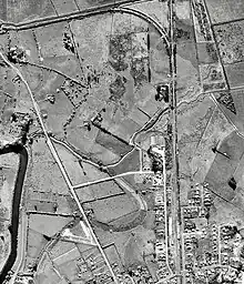 Minister of Public Works, Bob Semple, turned the first sod on 27 January 1938 at Paeroa[19] and about 32 mi (51 km) of the 42 mi (68 km) line had been started[20] when work was abandoned in 1940.[21] Work was still making slow progress in 1950, when a paragraph in the Ministry of Works annual report said 20 private crossings had been formed and metaled and 456 ft (139 m) of culverts installed.[22] In 1954 it was noted the major cost would be a £3100, 30 ft (9.1 m) bridge across the Waihou, the abutments already being in place.[3] Most of the work was still in place in the 1960s.[23]