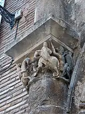 Moralizing capital showing Roland against the giant Ferragut by master Martin of Logroño