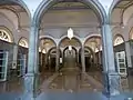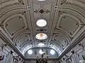 Inside, the monumental staircase and the lighting through large Skylights on the roof are remarkable. On the ground floor, there is a central hall on large pillars topped by a large skylight and a Stained glass window with the coat of arms of the province of Pontevedra. The plenary room is decorated with antique plasterwork. Innovative materials for the time are used in the interior of the building, such as iron in the Dormers and the mansard.[6]