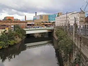 A bridge between Chapel Street in Salford and Hunts Bank in Manchester was first proposed in 1858, as a means of improving road links between Salford and Manchester Victoria station, each separated by the River Irwell. When the Lancashire and Yorkshire Railway applied to Parliament to build a railway link between Salford (New Bailey Street) station and Victoria, Salford Corporation opposed the bill, citing the township's poor access to Victoria Station. The railway company was forced by parliamentary committee to compensate the Corporation to the tune of £25,000, to be used to improve the aforementioned transport links.[1]