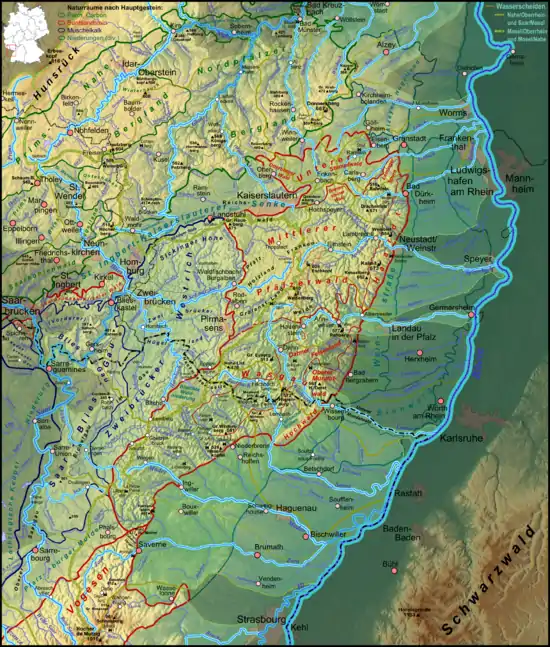 The Palatine Watershed (German: Pfälzische Hauptwasserscheide) forms the main drainage divide in the Palatinate between the Upper Rhine and the Middle Rhine, the two successive sections of the river Rhine that flow through the German state of Rhineland-Palatinate.