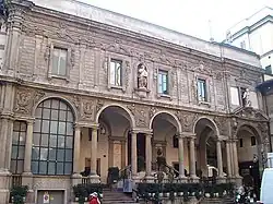 The Palazzo delle Scuole Palatine (Palace of the Palatine School) is a historic building of Milan, Italy, located in Piazza Mercanti, the former city centre in the Middle Ages. It served as the seat of the most prestigious higher school of medieval Milan. Many notable Milanese scholars of different ages studied or taught in these schools; Augustine of Hippo and Cesare Beccaria,[1] among others, served as teachers in the Palatine. The current building dates back to 1644, when it replaced an older one, which had the same function and was destroyed by a fire.