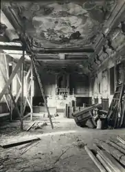 Work resumed at a later date after interruptions due to legal issues. The Regional Administrative Court in 1985 decided to award the building to the public authority, but the ruling was annulled shortly afterwards as illegitimate. The private property sent a plan for the allocation of the space and at ministerial level the response only arrived in 1988.
