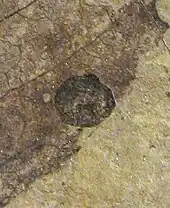 The Basal Angiosperms are represented by a single Nymphaeales water-lily species Nuphar carlquistii,[22] though a second member, Allenbya collinsonae, has been described from the Princeton Chert.[23] Wehr (1995) illustrated two fossils that were tentatively identified as fruits of the banana genus Ensete and the extinct myrtle genus Paleomyrtinaea respectively,[24] however further fossil finds resulted in the re-identification of the first as a N. carlquistii rhizome section, and the second is a seed mass from the same water-lily.[22]