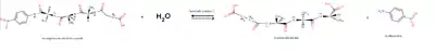Reaction catalysed by pancreatic elastase 1. This image represents the hydrolysis of the succinyl-Ala-Ala-Ala-p-nitroanalide. The addition of one water molecule provokes the hydrolysis of the molecule and the release of p-nitroaniline.