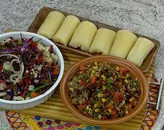 Paraguayan cuisine is the set of dishes and culinary techniques of Paraguay. It has a marked influence of the Guaraní people combined with the Spanish cuisine and other marked influences coming from the immigration received by bordering countries such as Italian cuisine and German cuisine. The city of Asunción is the epicenter of the distinctive gastronomy that extends in current Paraguay and its areas of influence, which is the reason why is considered the mother of the gastronomy of the Río de la Plata.[1] It is worth clarifying that in the Paraguayan society, the exchange of knowledge between mestizos, creoles and cario-guaraní people occurred before the Jesuit missions.