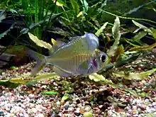 Parambassis pulcinella, the humphead glassfish or humphead perchlet, is a species of Asiatic glassfish native to fast-flowing streams in the Ataran basin (itself a part of the Salween basin) in southeast Myanmar and west Thailand.[1][2][3] It reaches a length of 10 cm (3.9 in) and is sometimes seen in the aquarium trade.[3] It is a relative of the perch.