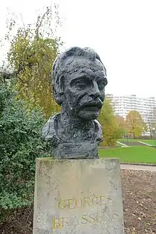 Bust of Brassens in the Parc Georges-Brassens in Paris