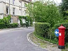 Many of the houses and gardens in Park Town were originally surrounded by ornamental iron railings. Those for the detached houses were removed for war use in the Second World War[4] but some have been restored. The Friends of Park Town restored the railings and lanterns around the central garden in the middle of the main Park Town crescent and received an award for the project from the Oxford Preservation Trust in 1977.[5]