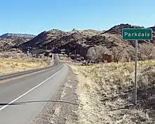 The Arkansas River flows through Parkdale, and it is home to whitewater rafting and the Parkdale Recreation Area, a unit of the Arkansas Headwaters Recreation Area. The Royal Gorge Route Railroad, which starts in Cañon City, turns around in Parkdale and heads back again through the Royal Gorge and back to Cañon City.[2] The place where it reverses its journey is known as Parkdale Siding.[3] Martin Marietta operates the Parkdale Quarry, which produces materials used in road construction and other industries.[4] Several zip line companies also operate in Parkdale.