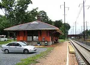 From c. 1914 until 1972, Parkesburg Tower was located near the Atlantic Avenue bridge. The tower served as a communication/signalling point for westbound (to Lancaster and beyond) trains, and a routing location for eastbound trains entering the Main Line of the Pennsylvania Railroad. A small service yard was also located nearby for both track service and to assist with sideling switching. Parkesburg Station once was the westernmost stop for the SEPTA R5 commuter line from April 2, 1990 (now the Paoli/Thorndale Line). It was truncated to Downingtown November 10, 1996[4] because of the need for trains to deadhead to Lancaster to turn around. It has since been re-extended to Thorndale, a few miles west of Downingtown.