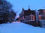 The original building was constructed in 1909[3] for the sum of £10,000, which was considered a significant price at the time. The former stone school, which had been used since 1853, became a parish hall.[3] It was officially opened on 13 September 1909 by Sir Francis Blake, 1st Baronet, of Tillmouth Park, who was then the Deputy Lieutenant of Northumberland.[4] According to the Wansbeck Telegraph, "Several hundred people assembled at Cramlington village to witness the opening...there was a rendering of Ye Mariners of England by the children... and a photographic view of the group [was] taken."[4]