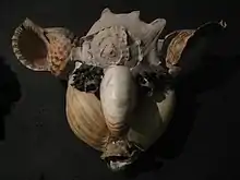 As an artist, Maisonneuve bloomed late in life. At the age of 64, he started a series of fifteen portraits which poked fun at or ridiculed politicians and monarchs from various countries. He made their effigies out of tropical seashells, primarily mollusc shells, which were held together with plaster, working without any concern for the end result. He used shells that he already had in his collection, or bought them at jumble sales. He called the series "Les Fourbes de l'Europe" ("Treacherous Rogues of Europe"). The portrait series included masks of Queen Victoria and the emperor William II.[1][2][3] and also of the Chinese, the Teuton (French term of abuse for the Germans) and the Tartar. After a while however, Maisonneuve shifted his attention from parody to the study of the human face and its many expressions.