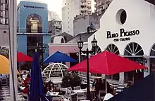 Lushly landscaped, Paseo La Plaza was designed as an urban oasis in one of Buenos Aires' most densely populated areas. A cultural as well as commercial center, it continues to host an active repertoire in its two theatres: the Pablo Neruda and Pablo Picasso Salons (with 520 and 440 seats, respectively), as well as in its patio amphitheater. The Neruda Salon also hosts local radio host Alejandro Dolina's news and commentary program, La venganza será terrible.[2] The development, the first of its kind in Buenos Aires, attracts over 350,000 theater-goers a year, becoming the most important such center in Argentina.[4]