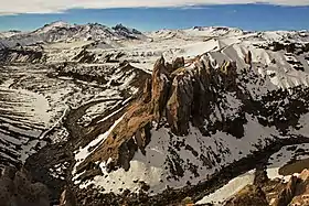 Monjes Blancos, mountain landmark adjacent to the Pehuenches pass, in San Clemente, Chile.