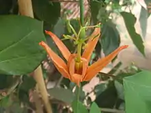 Passiflora aurantia, the orange-petaled passion flower, is a species in the family Passifloraceae which produces edible but not particularly palatable fruit.[2] It is native to New Caledonia and Australia.[3][1]
