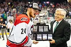 Brown receiving the Calder Cup from David Andrews.