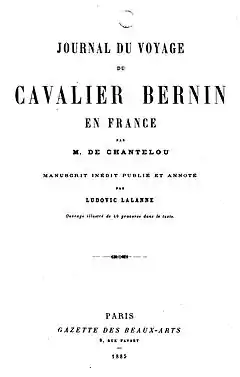 • Fréart de Chantelou, Paul (1885). Journal du cavalier Bernin en France (in French), edited by Ludovic Lalanne. Paris: Gazette des Beaux-Arts. Copy at Internet Archive. Copy at Gallica. Reprinted 1981, Aix-en-Provence: Pandora. ISBN 9782863710265.